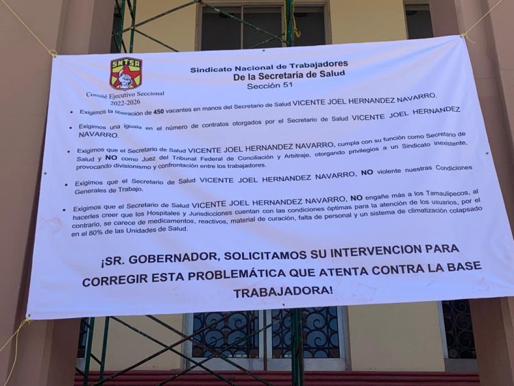 Los trabajadores agremiados a la Sección 51 del SNTSS exigieron la intervención del Gobernador del Estado Américo Villarreal Anaya al asegurar que el Secretario “no hace bien su trabajo”.