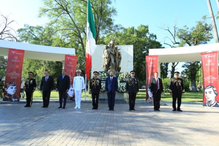 Ciudad Victoria, Tamaulipas.- Con una solemne ceremonia, se conmemoró el 176 Aniversario de la Gesta Heroica de los Niños Héroes de Chapultepec que fue encabezada por el secretario general de Gobierno, Héctor Joel Villegas González en representación del gobernador de Tamaulipas, Américo Villarreal Anaya y el general de brigada DEM Julio César Islas Sánchez, comandante de la 48 Zona Militar.
