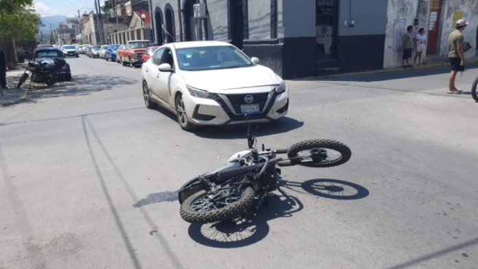 Lesionado resultó el motociclista luego de chocar control de automóvil que se pasó el alto.