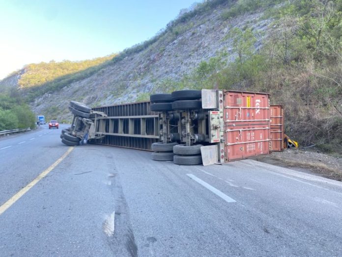 Durante el accidente los contenedores quedaron obstruyendo la vialidad provocando caos y el cierre parcial de la carretera.