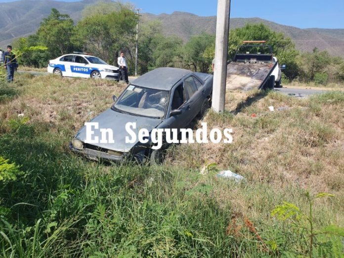 El vehículo accidentado es un Nissan cuyo conductor comentó que se desplazaba por el libramiento cuando una camioneta se le atravesó obligándolo a realizar una maniobra que lo hizo perder el control y salirse de la carretera.