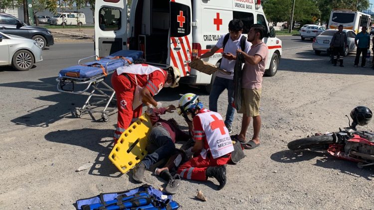 Un repartidor de Uber sufrió fractura expuesta de tibia y peroné, además de tobillo y cadera del lado izquierdo, tras ser impactado por una camioneta conducida por una mujer.