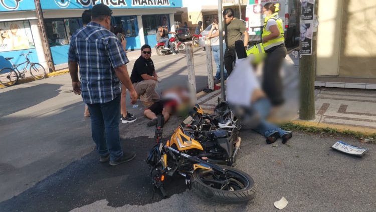 El fatal accidente ocurrió cuando una motocicleta tipo deportiva con dos personas del sexo masculino a bordo circulaba con preferencia de paso por la calle Juárez en sentido de poniente a oriente.