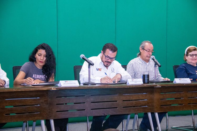 En la firma del acuerdo estuvieron también, la secretaria académica de la UAT, Dra. Rosa Issel Acosta González y el Dr. Venancio Vanoye Eligio, representante de la secretaria de Investigación y Posgrado, Dra. Mariana Zerón Félix.