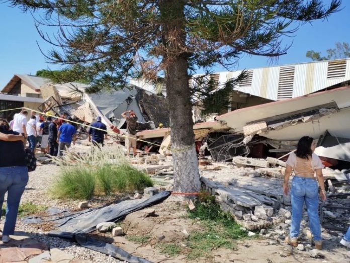 Según los primeros reportes, cuando ocurrió el desplome se encontraban cerca de 100 personas al interior, muchas de ellas permanecen atrapadas.