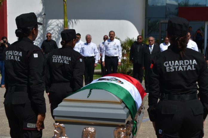 Ciudad Victoria, Tamaulipas. – En su último acto de servicio, el Policía Segundo “A” Luis Alberto García Guevara fue recibido con honores fúnebres en la explanada del Complejo Estatal de Seguridad Pública.
