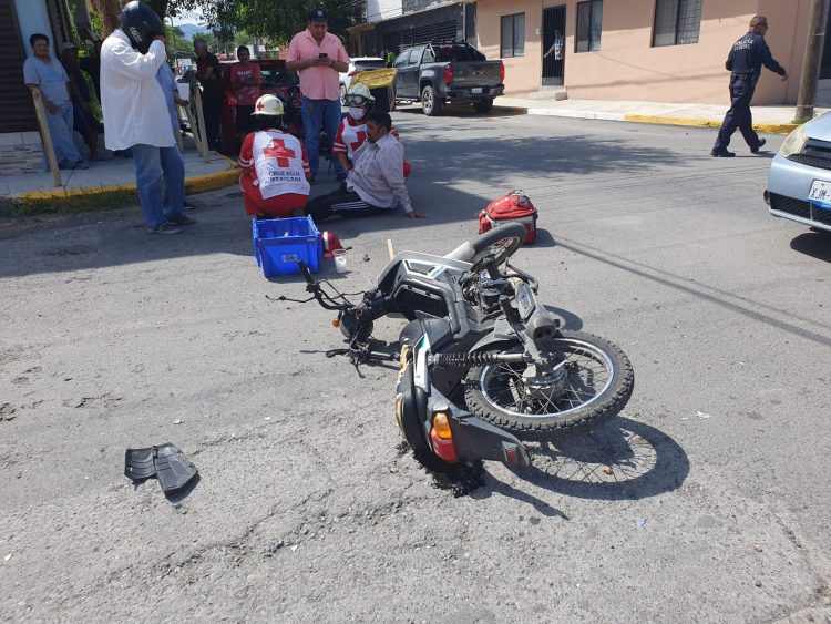 Con una probable fractura en sus dedos resultó un motociclista luego de chocar con un vehículo en el 13 Anaya.