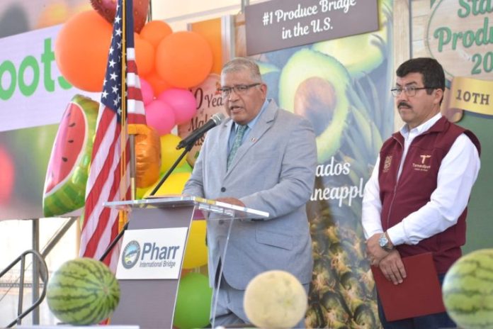 Pharr, Texas.- Con la finalidad de dar inicio a la temporada de producción agrícola de frutas, vegetales y hortalizas en el puente internacional Pharr, Texas, el secretario de Desarrollo Rural, Pesca y Acuacultura, Dámaso Anaya Alvarado asistió a la celebración del décimo aniversario del «Star of the Produce Season 2023-2024».