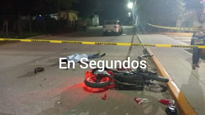 Autoridades dieron a conocer en el accidente participa un automóvil compacto en color blanco además de una motocicleta, al parecer marca Italika.