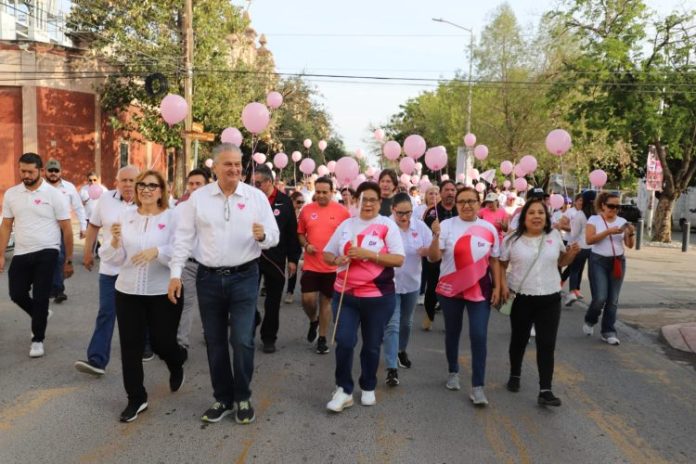 Ciudad Victoria, Tamaulipas.- Como parte de las actividades que durante el mes de octubre se llevan a cabo para incrementar la corresponsabilidad de mujeres, hombres y población en general en la prevención y detección temprana del cáncer de mama, el secretario de Salud, Vicente Joel Hernández Navarro, dio el banderazo de salida de la Segunda Caminata Estatal “Tamaulipas contra el Cáncer de Mama”.