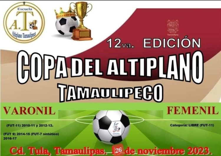 Cd. Victoria, Tamaulipas.- Prácticamente todo se encuentra listo para la celebración de la XII Copa de Futbol del Altiplano Tamaulipeco el domingo 26 de noviembre del presente año y que tendrá como sede instalaciones de la Unidad Deportiva Nuevo Amanecer de Tula con la participación de 20 equipos en 5 categorías en sus ramas femenil y varonil.