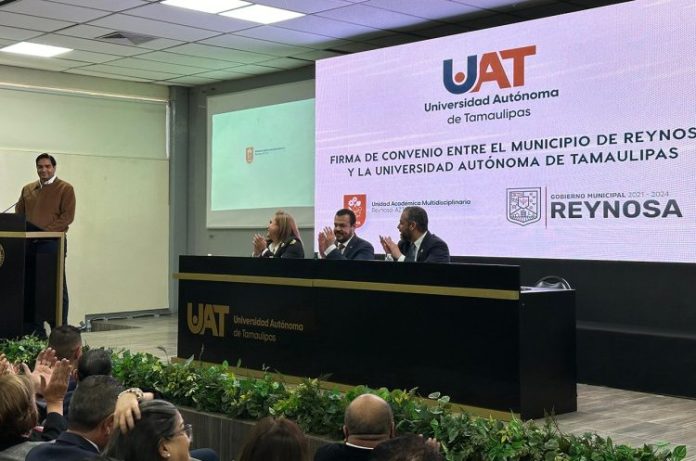 Por su parte, el alcalde de Reynosa, Lic. Carlos Víctor Peña Ortiz agradeció a la UAT por sumarse a los proyectos de crecimiento económico y social que plantea su administración, para lo cual, destacó, es esencial contar con una institución de educación superior fuerte como es la Máxima Casa de Estudios de Tamaulipas.