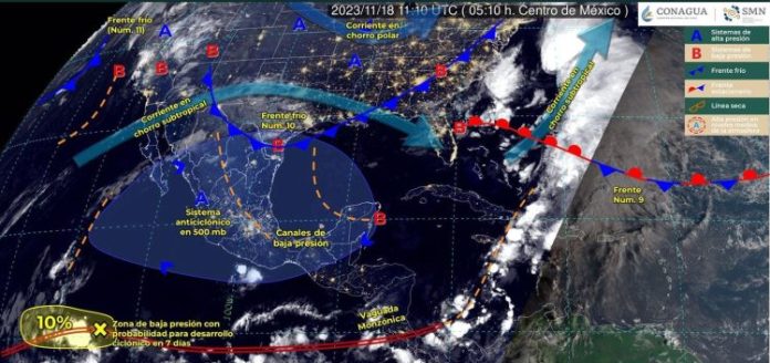 CIUDAD VICTORIA.- Hoy sábado, el Servicio Meteorológico Nacional informó que el frente frío número diez se extenderá sobre el noreste de la República Mexicana, mientras que un nuevo frente frío (Número once) se aproximará a la Península de Baja California.