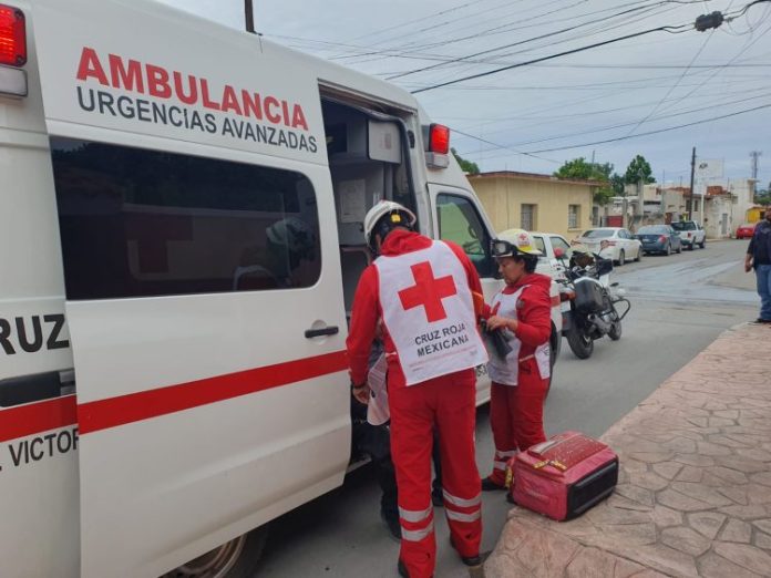 Un motociclista solamente fue valorado por paramédico de Cruz Roja luego de participar en un choque en el 5 Allende.