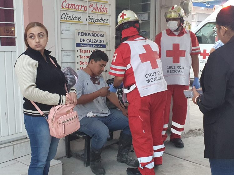 Hasta ese lugar acudieron paramédico de Cruz Roja para atender al lesionado quien presentaba una herida en la barbilla siendo necesario su traslado a la delegación para que la herida le fuera saturada.