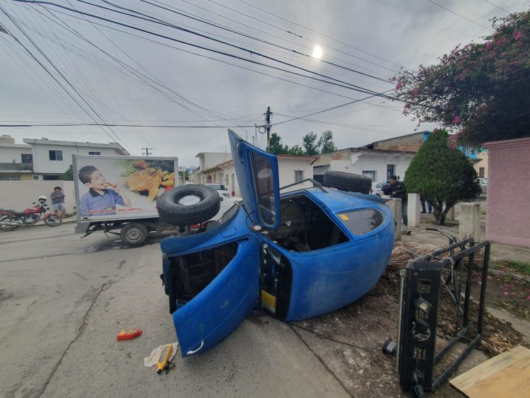 Su conductor aceptó que circulaba por Abasolo de oriente a poniente y que al llegar al 5 rebasó el límite de alto chocando con el bocho el cual se proyectó con un montículo y posteriormente volcó. Residentes del lugar fueron los que reportaron lo ocurrido al 911.