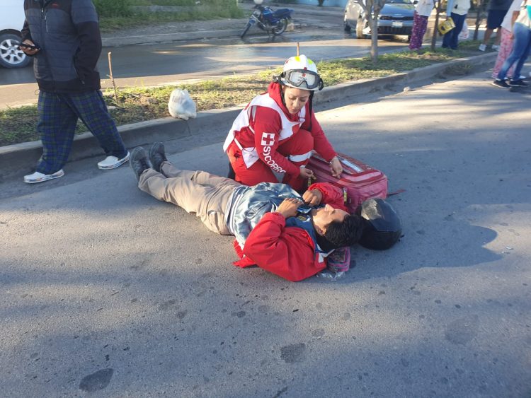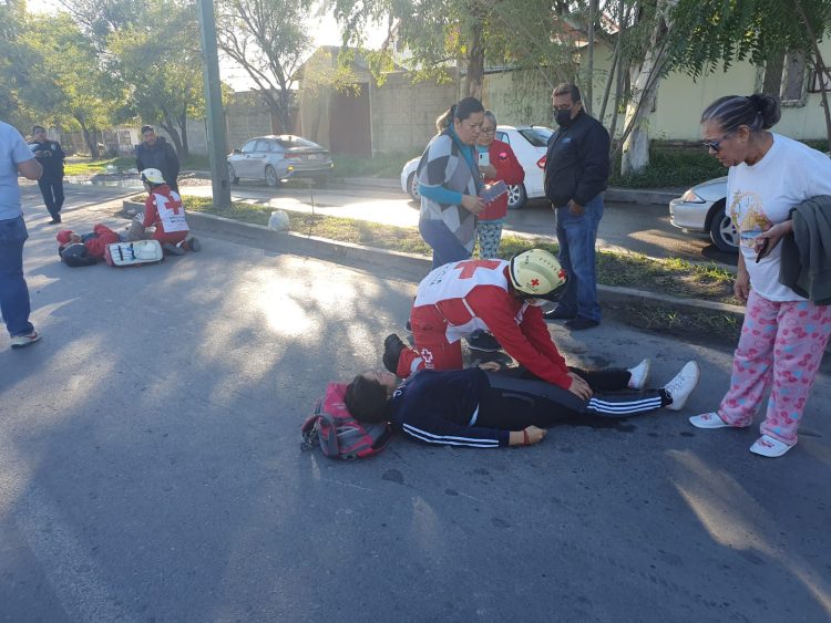 Al lugar acudieron paramédicos de Cruz Roja para atender a la estudiante y al motociclista quien se quejaba de un fuerte dolor en una de sus extremidades superiores.