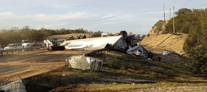 Llera, Tamaulipas.- La volcadura de un tráiler que transportaba ácido corrosivo, provocó el cierre total de la carretera Zaragoza-González.