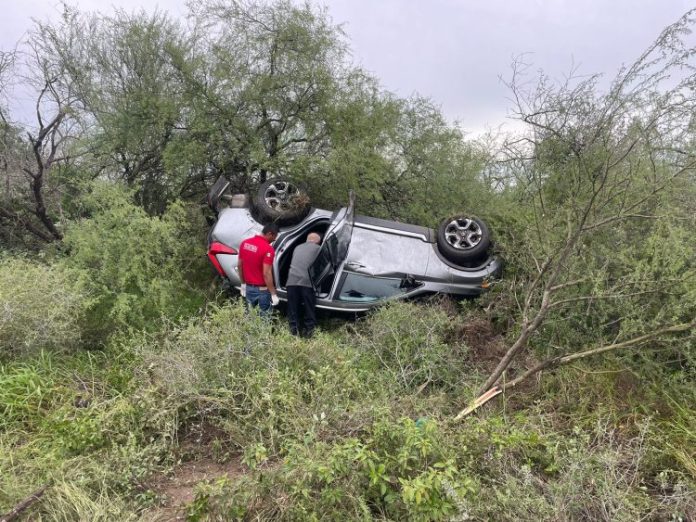 San Fernando, Tamaulipas.- En cumplimiento al operativo Héroes Paisanos Invierno 2023 personal de la Guardia Estatal de Apoyo Carretero comisionado a la Estación Segura Carbonera auxilió a los tripulantes de un vehículo que se volcó al viajar del municipio de San Fernando con destino a Reynosa.