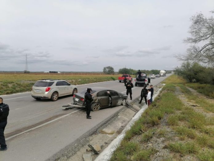 Efectivos de la Guardia Estatal pertenecientes a la Estación Segura A-3 Los Rayones visualizaron un vehículo con placas de circulación del estado de Texas, con dos tripulantes al interior, un adulto y un menor de edad, quienes no presentaron lesiones.