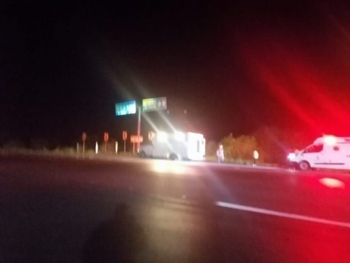 Cruillas, Tamaulipas.- Tras la volcadura de un autobús ocurrida en el kilómetro 128 de la Carretera Federal 101, próximo a la intersección con la Carretera Federal 180 Costera del Golfo, personal de la Guardia Estatal acudió al lugar para auxiliar a los pasajeros lesionados.