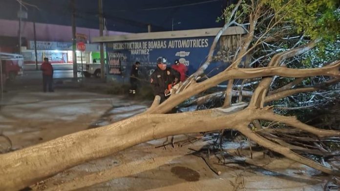 CIUDAD VICTORIA. – A consecuencia de los fuertes vientos que se registraron por el ingreso del frente frío número 25, se reportó la caída de alrededor de once árboles en diferentes calles de esta Ciudad Capital.