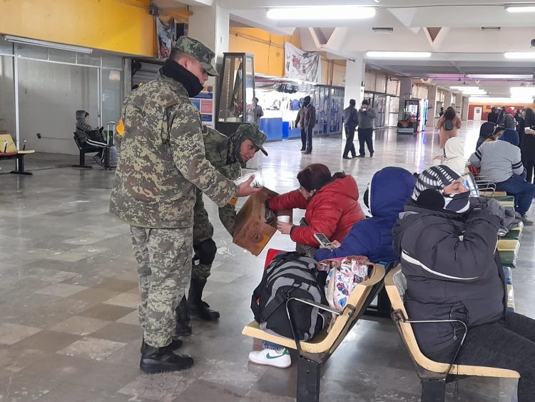 Los elementos de la Sedena repartieron pan y atole en albergues, calles y lugares públicos ante la ola de frío imperante en el Estado de Tamaulipas.