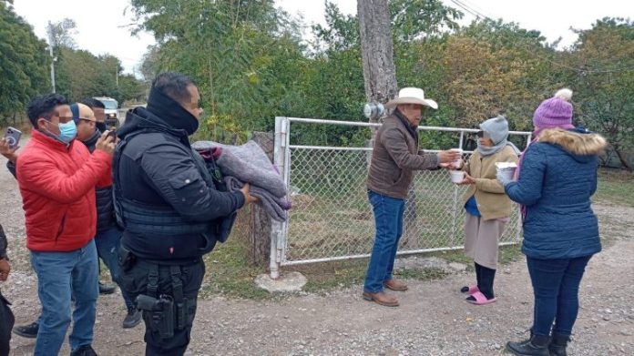 Güémez, Tamaulipas.- Con bebidas calientes, cobijas y prendas abrigadoras, personal de la Guardia Estatal en coordinación con Protección Civil y el Ayuntamiento de Güémez llevan a cabo el Operativo ‘’Carrusel’’ en diferentes ejidos de este municipio.