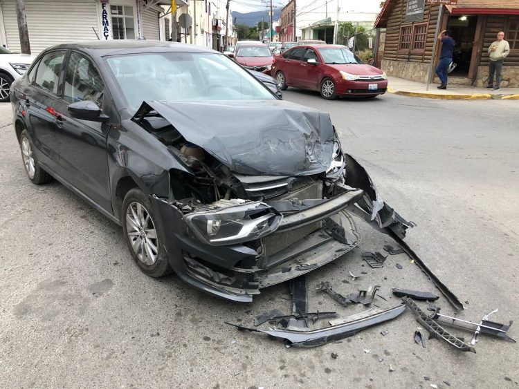 Al llegar al cruce con la de Hidalgo aparentemente no respetó el alto siendo impactado por un vehículo Volkswagen cuyo frente quedó completamente destrozado.