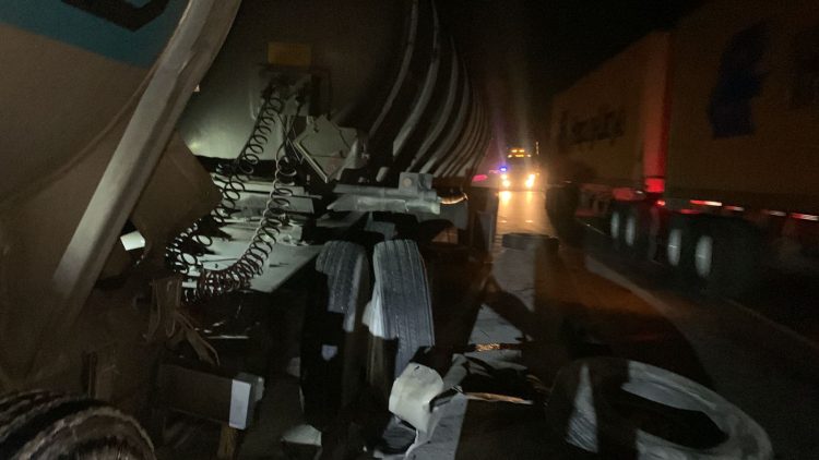 Finalmente, las unidades quedaron atravesadas sobre uno de los carriles y uno de los tanques fuera de la superficie de rodamiento.