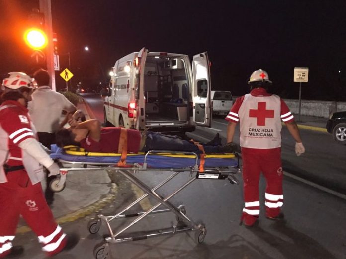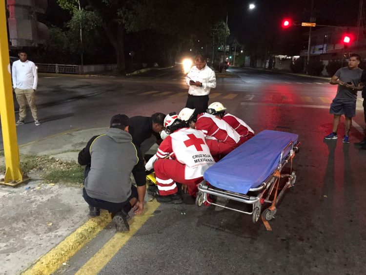 El accidente ocurrió en el ocho bulevar Praxedis Balboa, lugar hasta el cual acudieron paramédicos de Cruz Roja para atender al lesionado.