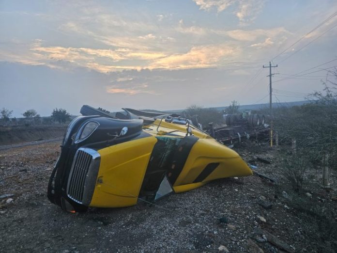 Elementos de la Guardia Estatal, fueron los primeros en llegar a la zona para auxiliar al conductor del tractocamión así como apoyar en las labores de vialidad.
