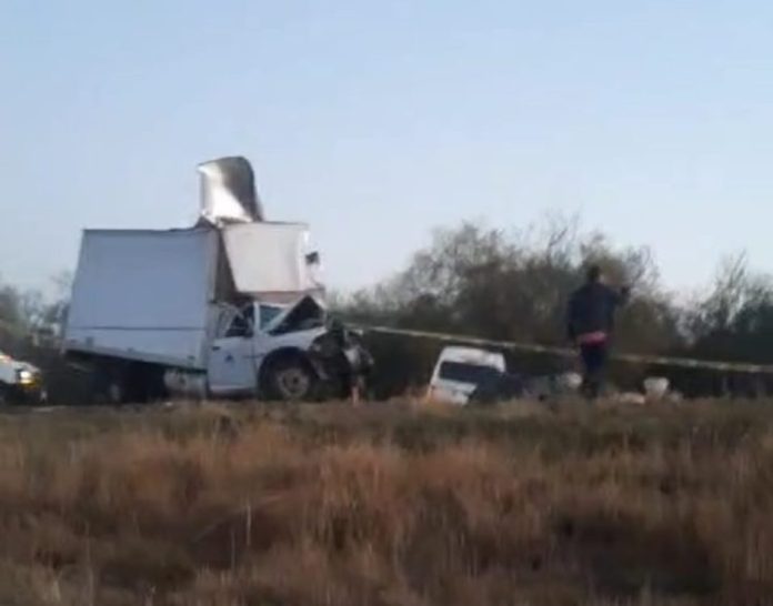Hidalgo, Tam.- Un total de ocho personas sin vida y dos vehículos completamente destrozados fue el resultado de un choque frontal la mañana de este sábado en la carretera Victoria-Monterrey.