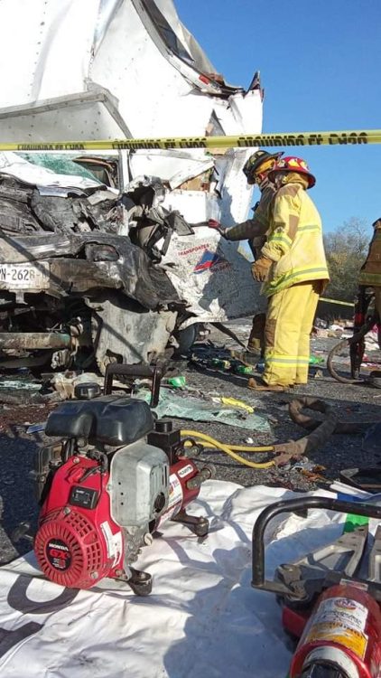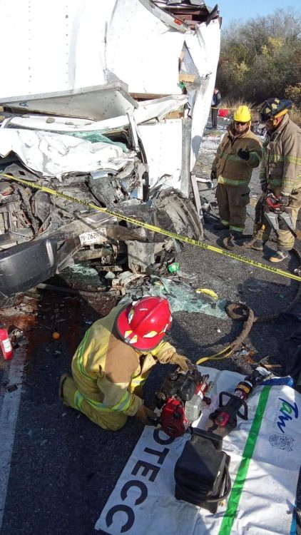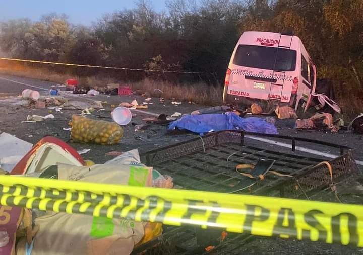 Un choque frontal entre un camión de carga y una camioneta tipo van en la carretera Victoria Monterrey dejó un saldo trágico de nueve personas sin vida.