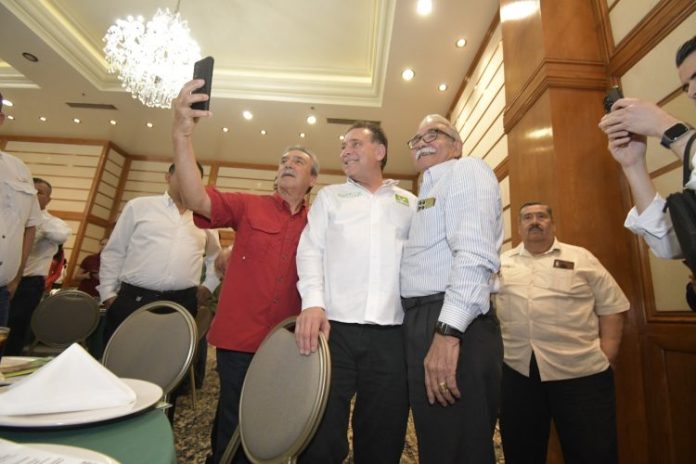 Reynosa.- El magisterio va a estar «palanca» en el Senado con Geño y Maki, aseguró el candidato del Partido Verde al Senado de la República, Eugenio Hernández Flores, ante integrantes del magisterio, quienes les manifestaron su respaldo.