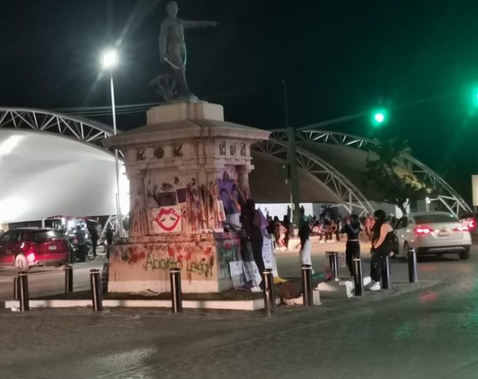 Cabe señalar que al llegar a la Unidad Deportiva Adolfo Ruiz Cortines las mujeres que realizaron la caminata vandalizaron el monumento al general Pedro José Méndez Ortiz donde realizaron diversas “pintas” y le pegaron cartulinas alrededor.