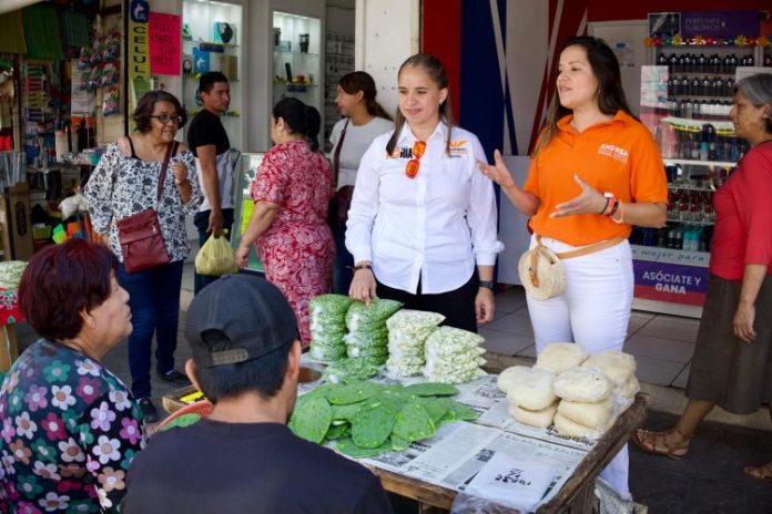 Ciudad Victoria, Tamps.- Luego de una fructífera gira por dos de los municipios más importantes de la frontera tamaulipeca como los son Matamoros y Nuevo Laredo, la candidata al Senado de la República por Movimiento Ciudadano Andrea García recorrió y platicó con los locatarios, así como con los visitantes del Mercado Argüelles, sitio enclavado en el corazón del centro de Ciudad Victoria y que es una de las zonas con afluencia en cuanto al comercio.