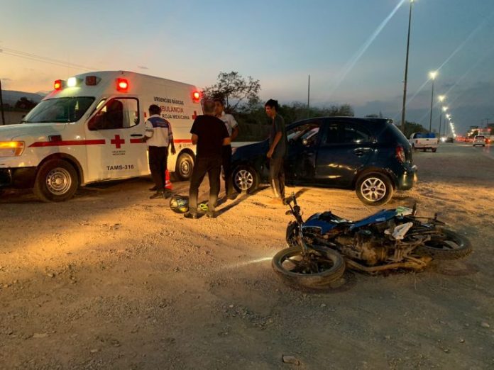 Los hechos ocurrieron en el Eje Vial Lázaro Cárdenas con calle Michoacán lugar dónde paramédicos de Cruz Roja atendieron a dos personas que viajaban a bordo de una motocicleta marca Italika.