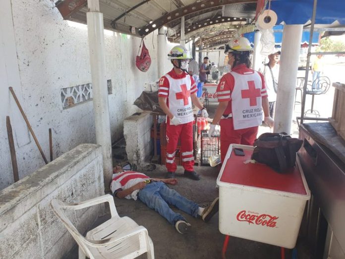Paramédicos de Cruz Roja arribaron al lugar para atender a la persona, la cual presentaba una herida en la frente.