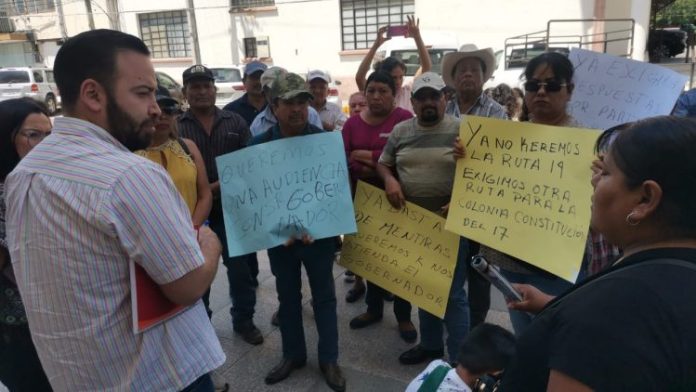Al señalar que en la Colonia Constitución del 17 viven más de 600 familias, los manifestantes al precisar sus demandas mencionaron que requieren la legalización de sus predios, servicio de energía eléctrica y una ruta de transporte público.