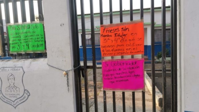 Cabe señalar que la escuela primaria Ignacio Ramírez Hernández del Ejido Guadalupe Victoria cuenta con una matrícula en el turno matutino de 147 alumnos y en el turno vespertino son alrededor de 70 estudiantes, los cuales permanecen sin actividad escolar desde el pasado martes por la falta de maestros titulares en los grupos de tercero y cuarto grado.
