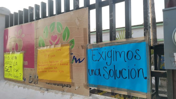 Tras el plantón iniciado el pasado martes por las madres de familia, el día de ayer miércoles acudió al plantel la Jefa de Sector de la Secretaría de Educación de Tamaulipas, sin embargo al no ofrecer una solución a la demanda de las madres de familia el plantón con la suspensión de la actividad escolar continúa el día de hoy sumando su tercer día consecutivo.