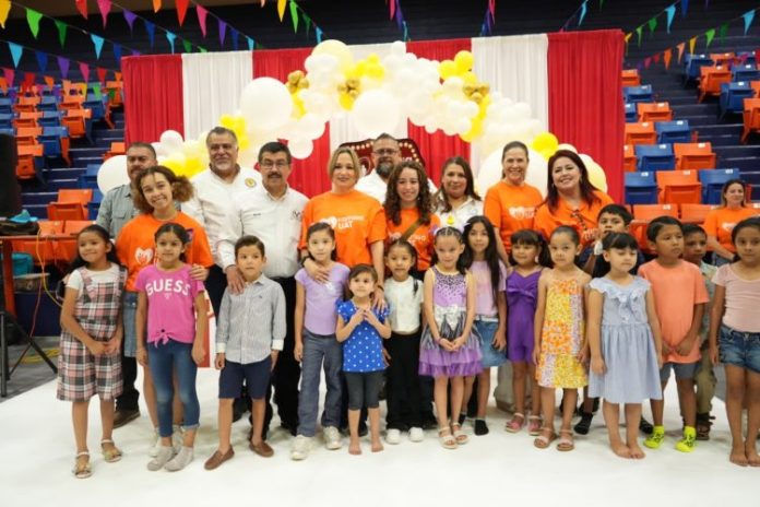 El rector de la Universidad Autónoma de Tamaulipas, MVZ Dámaso Leonardo Anaya Alvarado, y su esposa, Lic. Isolda Rendón de Anaya, pusieron en marcha los eventos del Día del Niño y de la Niña que la casa de estudios organiza para festejar a los hijos e hijas del personal universitario afiliado al Sindicato Único de Trabajadores de la UAT.
