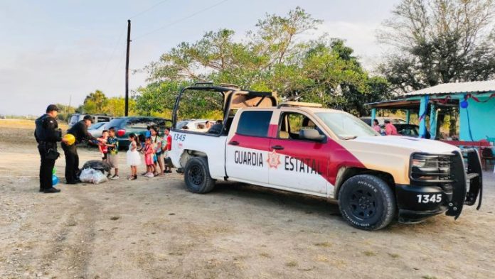 Soto la Marina, Tamaulipas.- Niños, niñas y padres de familia residentes de la comunidad La Zamorina del municipio de Soto la Marina tuvieron una convivencia con efectivos de la Guardia Estatal en la cual recibieron obsequios como dulces y juguetes.