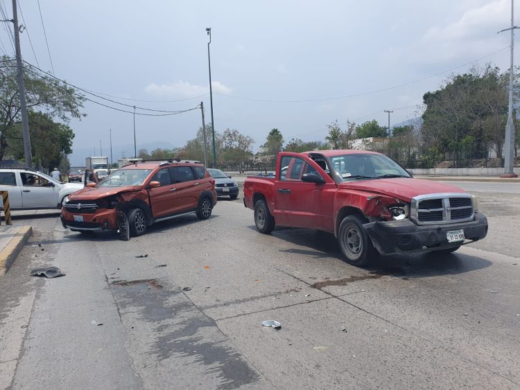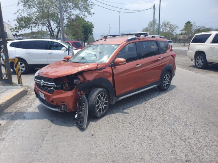 Presuntamente en el cruce con el Eje Vial no respetó la señal de alto y terminó chocando contra una camioneta Dakota que venía desplazándose de sur a norte con preferencia de paso.