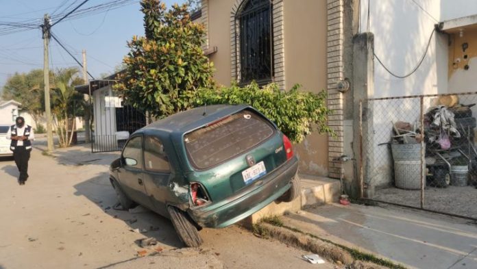 El impacto fue tan fuerte que la unidad estacionada quedó trepada sobre la banqueta.