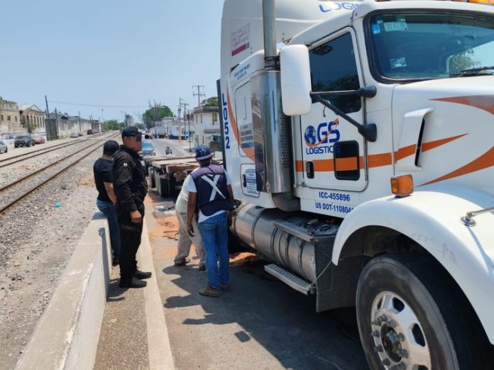 La unidad perteneciente a la empresa GS-Logistics se encontraba sobre el puente del Canal de la Cortadura, lugar desde donde el operador solicitó el apoyo de la Guardia Estatal.