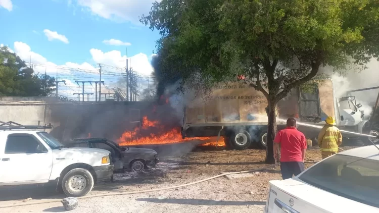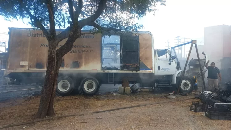 Durante el incendio el fuego consumió un camión propiedad de la empresa, así como una camioneta Ford Ranger, un automóvil Nissan y un vehículo de la marca Chevrolet.