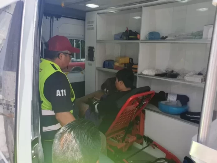 Paramédicos fueron los encargados de atender al lesionado y luego trasladarlo a un hospital, agregando que al momento del choque la persona llevaba puesto el casco de seguridad.