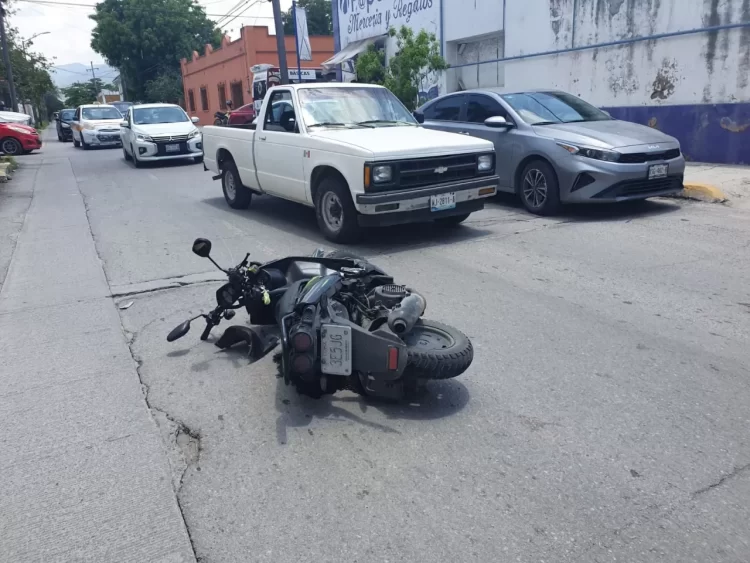 Tránsito Municipal comentó que como presunto responsable aparece el lesionado, quien viajaba a bordo de una motocicleta por la calle Matamoros.